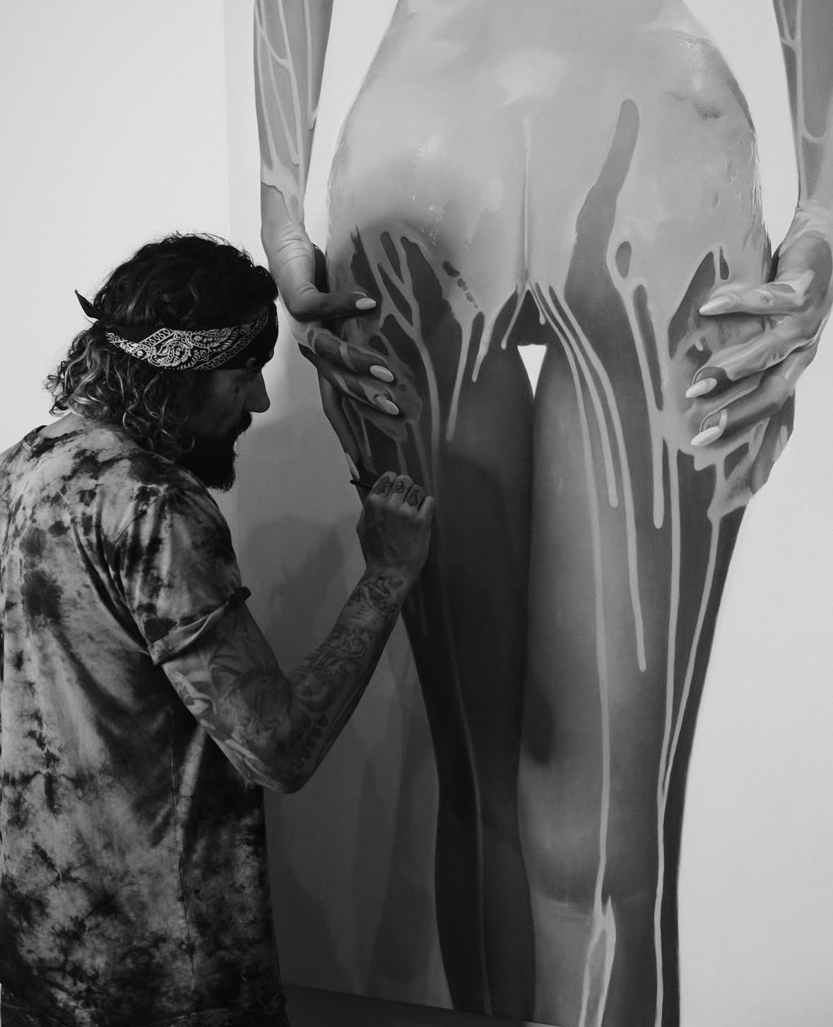 Mike Dargas is a contemporary German artist celebrated for his hyperrealistic paintings that showcase a striking level of detail and emotional depth. Dargas's work is deeply inspired by realism and the human experience. Drawing influence from classical masters such as Salvador Dalí and Caravaggio, he combines old-world techniques with a modern perspective. His paintings often focus on themes of vulnerability, beauty, and emotional complexity, portraying subjects in a highly detailed manner that mimics photography. One of Dargas's signature themes involves capturing the interplay of light and texture, often depicting models with substances like honey, paint, or water on their skin. This technique creates a dynamic visual and emotional effect, inviting viewers to explore the layers of both the medium and the human condition.